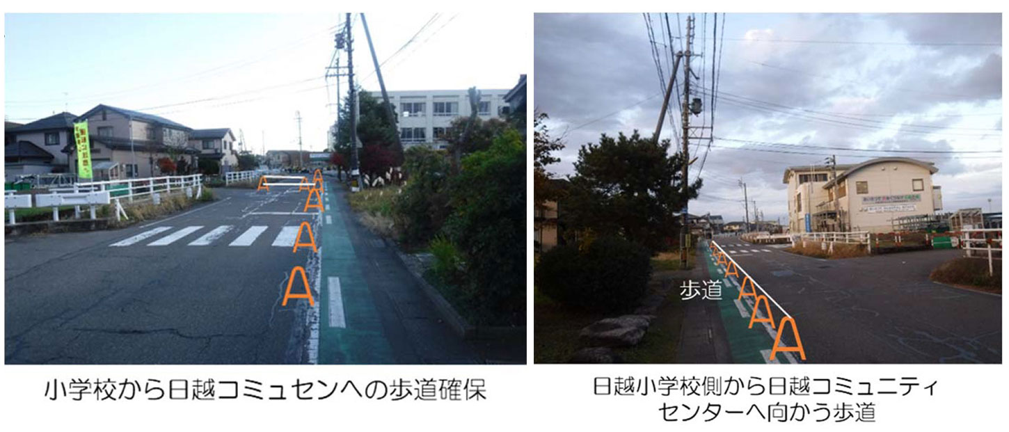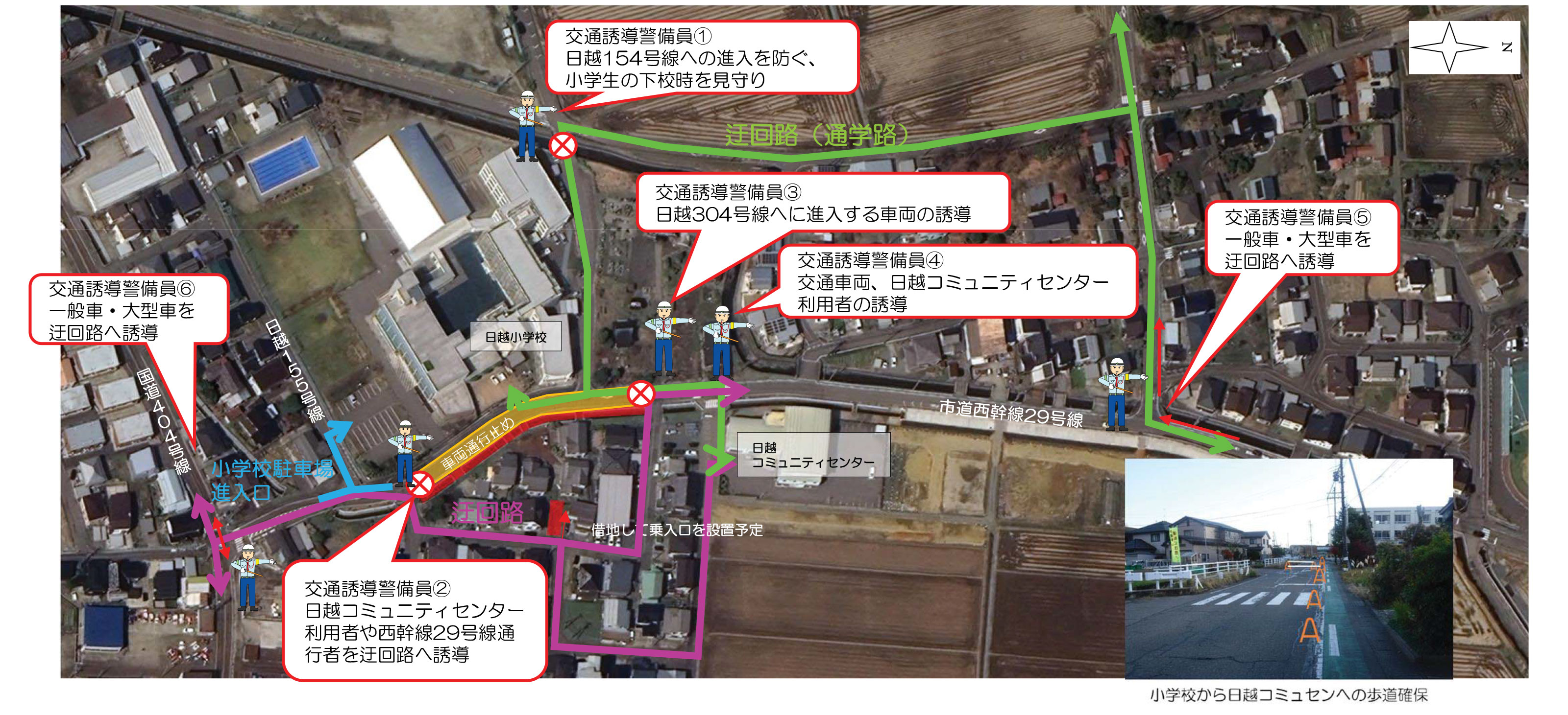 ※交通誘導警備員を配置し、児童及び歩行者の誘導を行い安全に作業します。