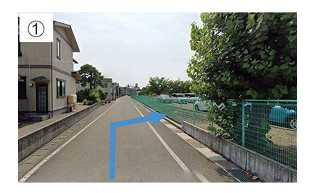 市道西線29号の通行規制中は正面の駐車場入口をご利用いただくことができないため、青矢印(➡)よりご入りいただきます。