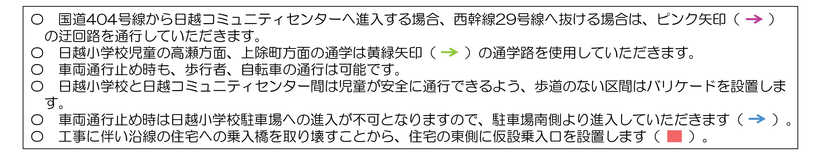 本工事に伴う交通規制について、5月に地元説明会及びご案内しておりました市道規制について、小学校前 市道通行規制の作業開始についてお知らせいたします。